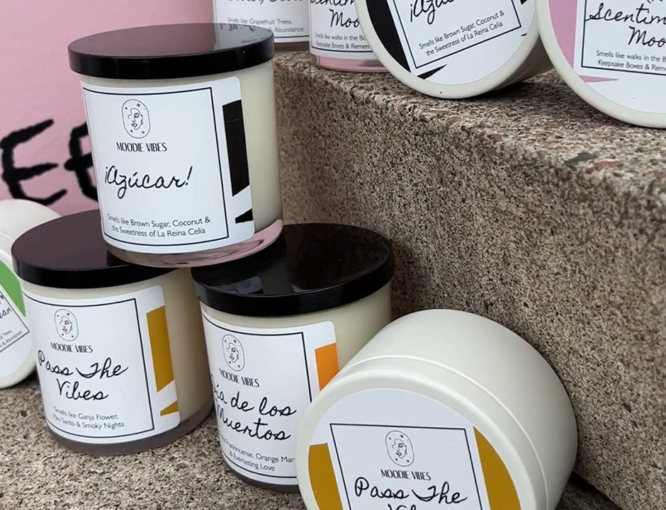 I'm Aminta, the founder of Moodie Vibes. I am a proud Guatemalan-American, raised in Brooklyn, New York and I speak fluent Spanglish ;) I started making candles in 2021 but have been a candle hoarder (we keep it real here) for years.